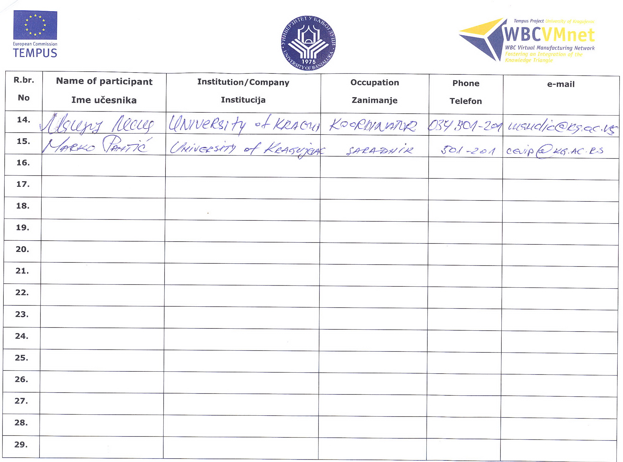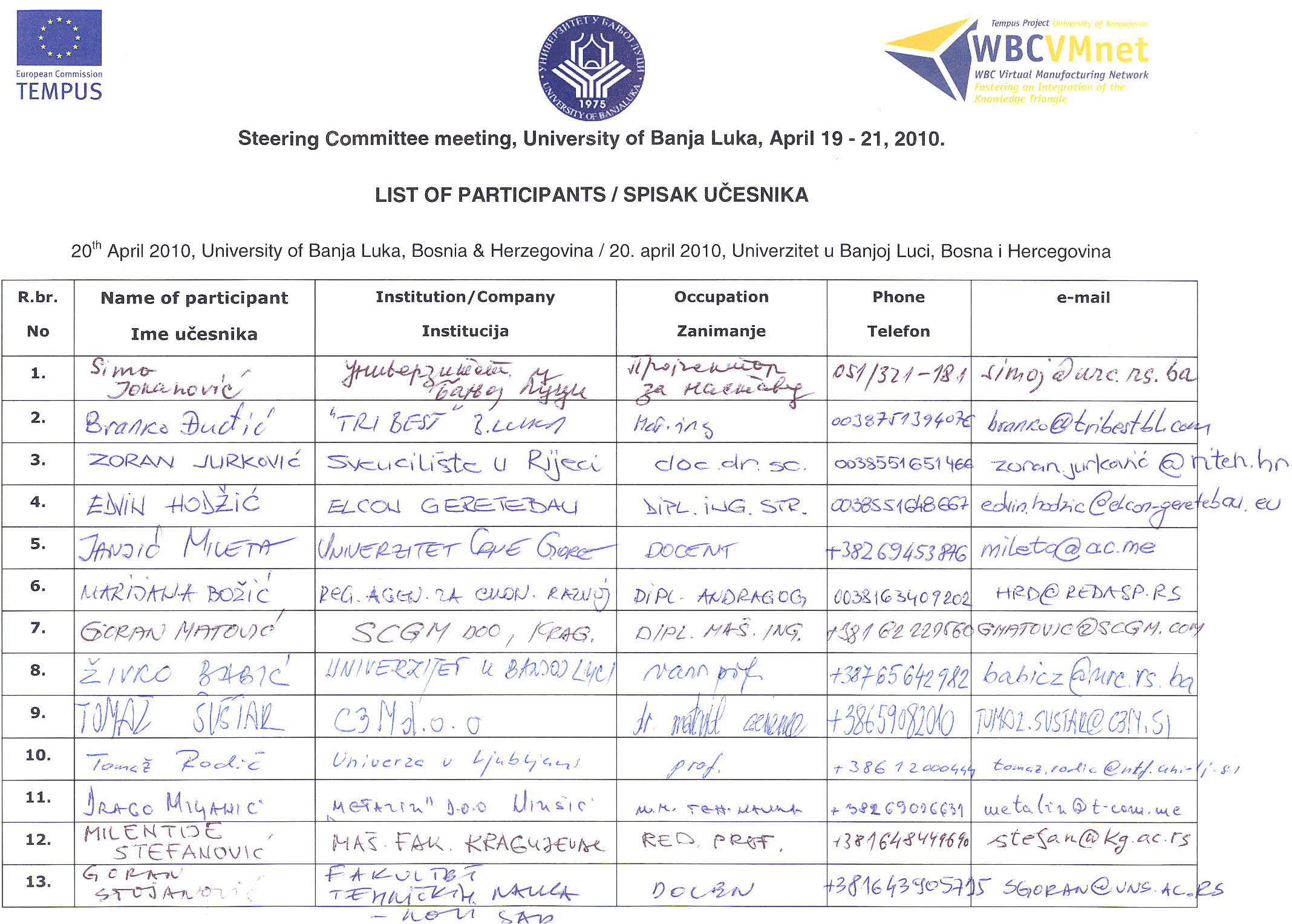The second Steering Committee meeting was held on April 20th 2009, in Rectorate Hall, University of Banja Luka (Bosnia & Herzegovina). The most project partners took active part in this event. As the agenda indicates, the meeting is divided into five parts.